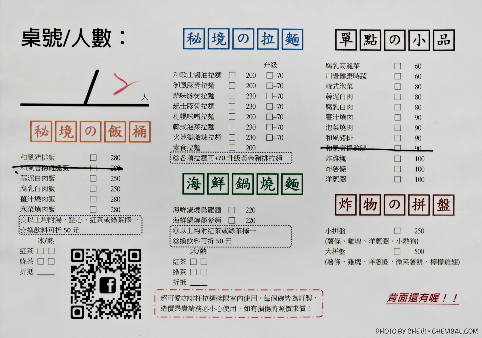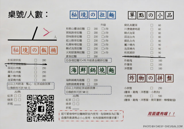 這裡每人的低消為100元,餐點的種類還不少,飯類、麵類、小品與炸物都能吃得到,不過價位感覺和在市區內用餐差不多~