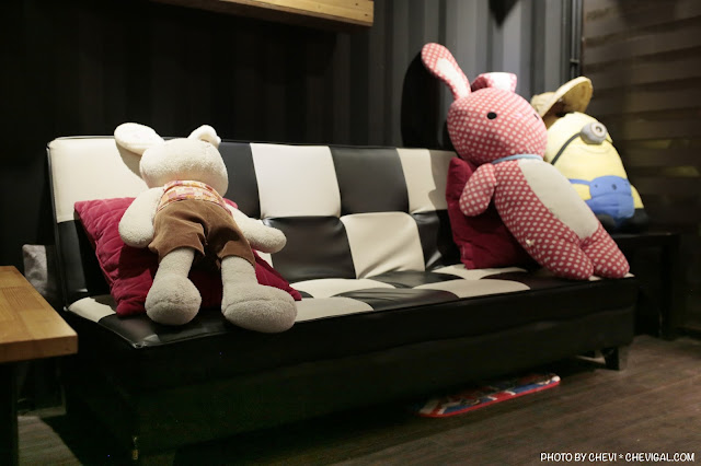 沙發有可愛的兔子娃娃,有點溫馨可愛,不過小小兵您老兄怎麼也在這裡出現了……?XD