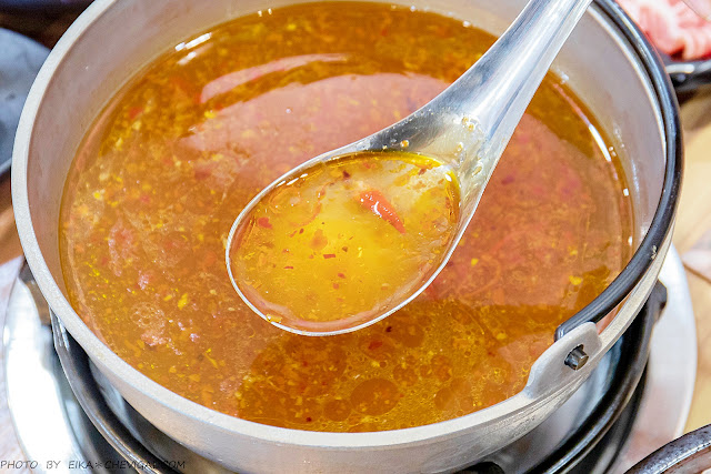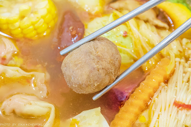 麻辣蒜香的湯頭一上桌就香氣四溢,喝起來偏台式口味,完全不顯死鹹,是可以直接入口的鹹度;不過大概辣度是介在小辣與中辣之間,對魚編來說有點太辣,可以再請店家調整辣度。