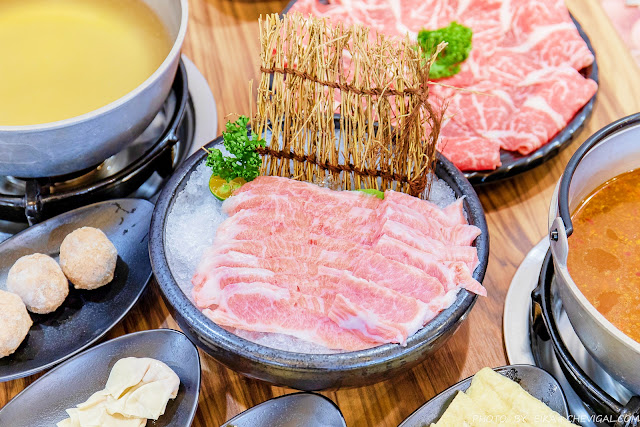 厚切松阪豬的份量給得十分大方,份量幾乎是外面火鍋店的兩倍,而且粉嫩的色澤特別誘人~每片肉片的厚度大概都有半公分那麼厚,所以口感果然格外爽脆、過癮!