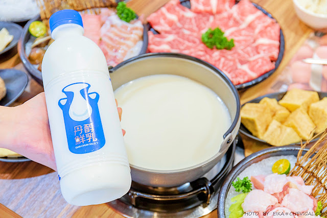 香濃牛奶的湯底則是選用屏東丹醇鮮乳,裡面還加入了乳酪絲,嚐起來帶有清爽的奶香;或許大家平常都習慣了濃到快要化不開的牛奶鍋,但其實這偏清爽的奶香才是鮮奶自然的原味啊XD