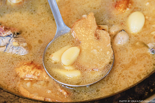 湯頭的薑與大蒜香氣很夠味,鍋裡還有加入不少完整的蒜頭,喝起來的麻油香氣濃郁順口,雖然甜度表現稍微高一些,不過並不會膩口。