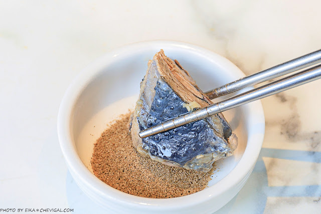 吃起來有著淡淡的麻油香氣,微潤的口感當中帶點香酥,沾取調味粉後的蛋香與麻油香被提襯地更為明顯,真的是很特別的吃法,不妨可以嚐鮮看看~