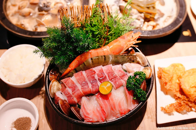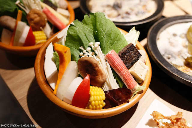 每鍋均附綜合菜盤,份量與食材種類算是中規中距,以一般女生來說可以吃飽,食量大的朋友可以像我們加價$198元升級為海鮮總匯。