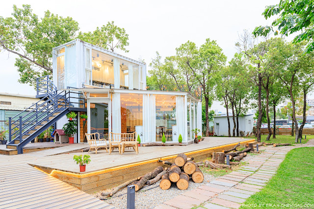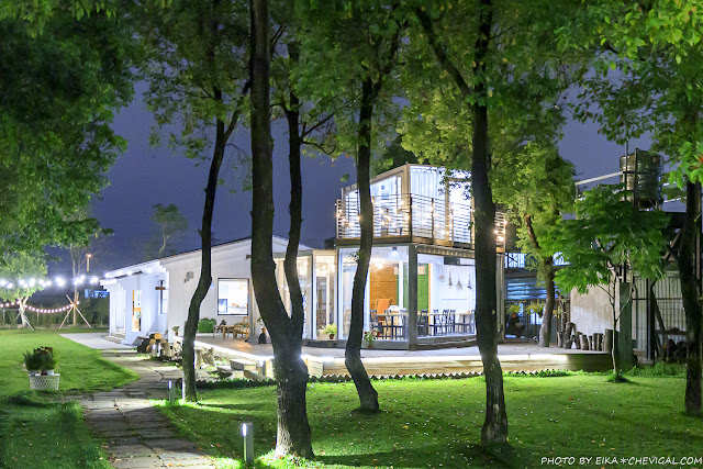 旁邊還有另一棟純白玻璃貨櫃屋,這區平常沒有開放,基本上是以場地租借為主,也有不少新人會選擇來這裡舉辦婚禮,感覺氣氛也蠻棒的~