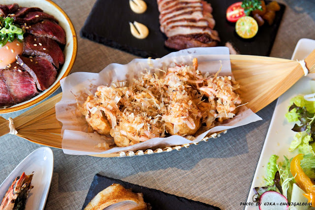 明太子花枝丸130元,以多顆大顆飽滿的酥炸花枝丸,擠上微鹹微甜的明太子醬,再灑上滿滿柴魚片;每口都吃得到花枝Q彈的飽嘴感,不同層次的風味與口感讓人覺得特別滿足~