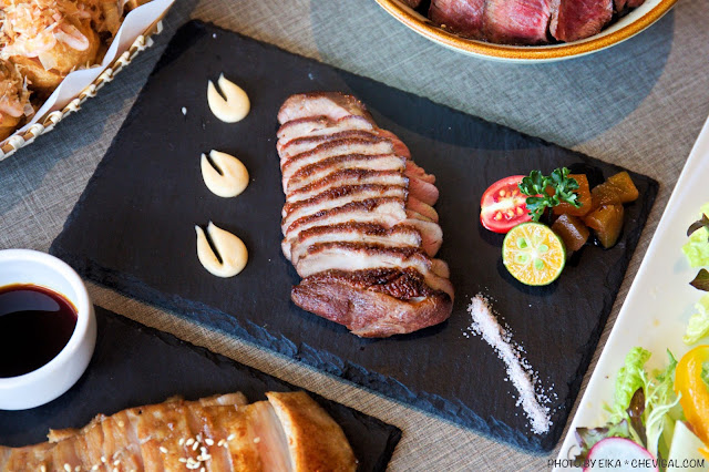 鴨胸與松阪豬排同樣是以水果木炭烤製上色,美麗如荔枝果皮般的外表色澤,與粉嫩欲滴的肉質,建議務必要趁熱享用,才能嚐到香酥多汁、油脂溫潤飽滿的極致口感!