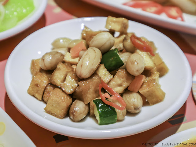 花生搭配、豆干與小黃瓜切丁清炒,再加入些許的辣椒,口味其實不重,口感還蠻有層次的。