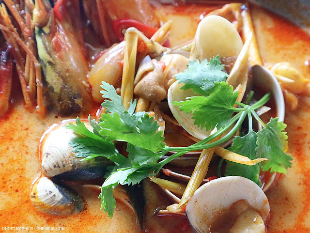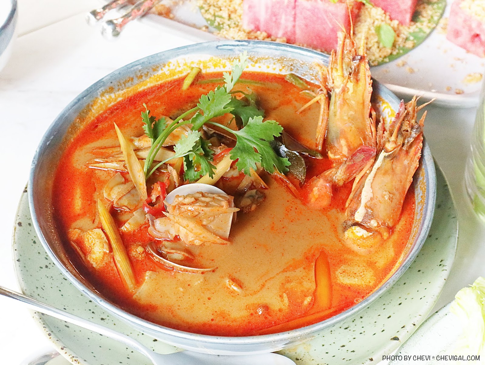 常吃泰式料理的朋友,看到這道海鮮冬陰湯應該會覺得很熟悉,也就是我們一般常看到的「東央」或是「冬央」;湯頭的辣度有出來,還能喝到香茅的特殊香氣,酸酸辣辣好不過癮!