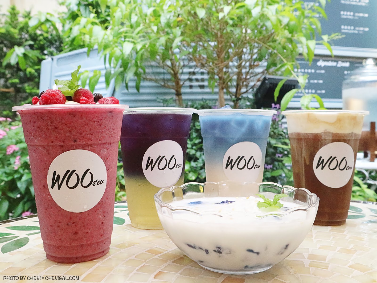 下午不妨順便來個悠閒的午茶時光吧~WOO CAFÉ副品牌「WOO Grab」位在廣場一樓充滿綠意的中庭,以多種鮮花植栽營造出放鬆清新的氛圍,甚至在裡面看到喜歡的香草植物都能直接買回家!