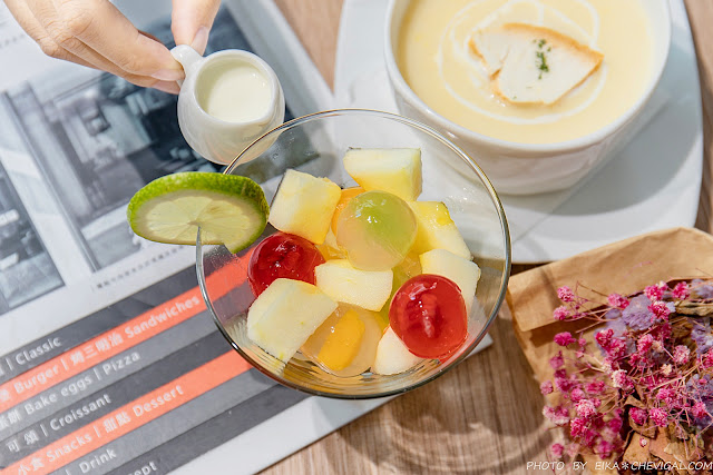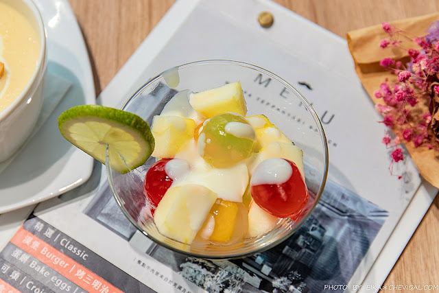 水果沙拉也是以套餐加購,這真的可以說是我們吃過最繽紛可愛的沙拉了!裡面有多種水果QQ球,像是水蜜桃口味、覆盆子口味與奇異果口味,相信小朋友應該也會很愛!