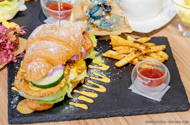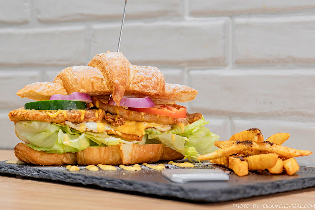 日式胡麻豬烤可頌$215元,繼前面大份量的手作漢堡排,果然連烤可頌都是巨無霸份量!保證一般男生也都能吃得飽,身為女生的魚編光是用看的就快飽到天靈蓋了……