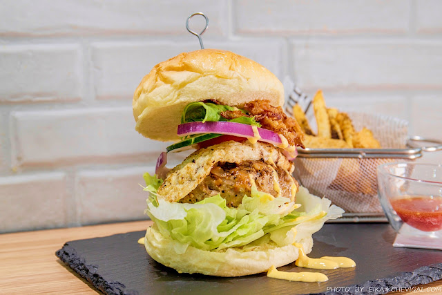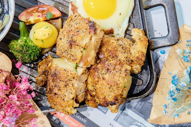 手作的牛肉漢堡排是以牛肉混合豬肉,再加入洋蔥丁與黑胡椒,並以鐵板慢慢煎熟,不僅保留了飽滿的肉汁,也讓香氣更加具有層次感!再搭配生菜、紫洋蔥與番茄等蔬果,淋上香濃的巧達起司,推薦愛吃漢堡的朋友必點~