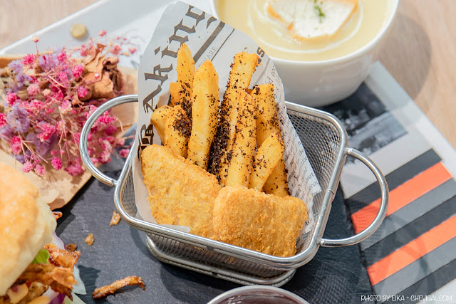 炸物的部份有薯條與雞塊,炸油瀝得非常乾淨,完全沒有惱人的油耗味;而且薯條表面還撒有OREO巧克力粉,看似有點跳痛的組合,其實吃起來意外地合拍耶!