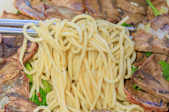 乾麵選用的是細麵,比較容易吸附湯汁、入味,而且還帶有淡淡的蒜香,香氣迷人卻又不會讓人有吃完口臭的困擾XD