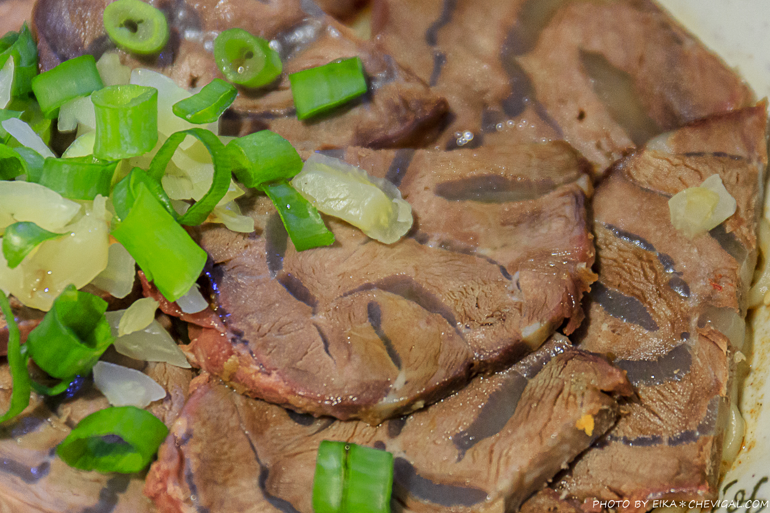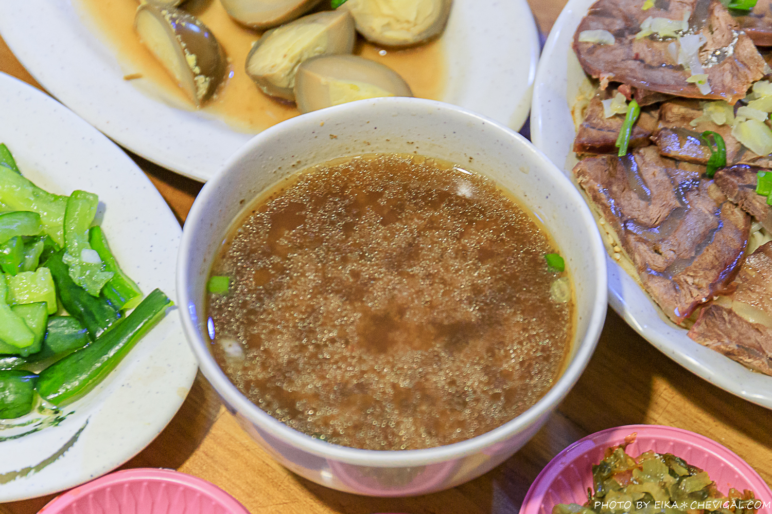 牛肉麵有五大塊牛腱肉,紅燒香氣滷得十分入味,口感吃起來軟嫩又不失嚼勁,唯一可惜的是滷製後的肉香會比較清淡,沒有那麼濃郁。
