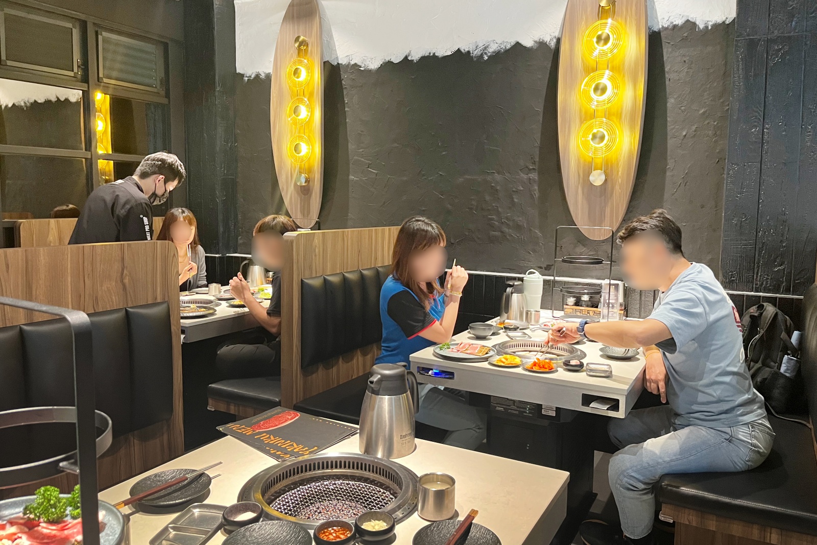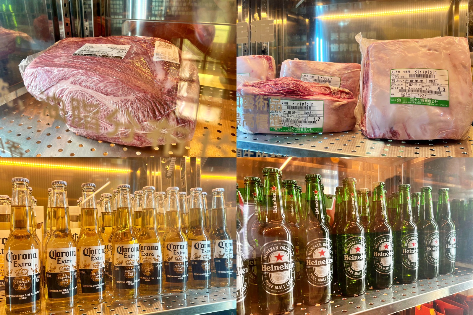 走進燒肉MEN朝富店,除了第一眼就被黑金設計的空間氛圍吸引,入口還有展示店內所使用的牛肉原肉,同時也有販售酒類,想要大口喝酒、大口吃肉,來到這裡準沒錯。(未滿18歲請勿飲酒)