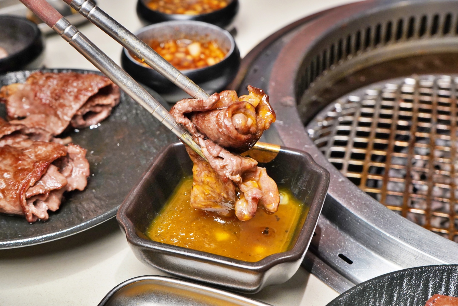 薄切牛舌放上烤網後,只需短短幾秒,就能烤出外層焦香、內裡鮮嫩的口感。入口時彈性十足,帶有牛舌獨有的爽脆與鮮甜。大推搭配檸檬汁一起享用,酸香能平衡油脂,更能凸顯牛舌的鮮美~