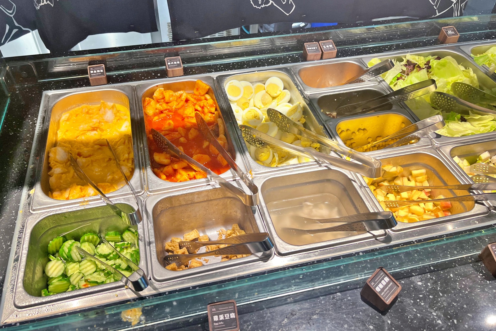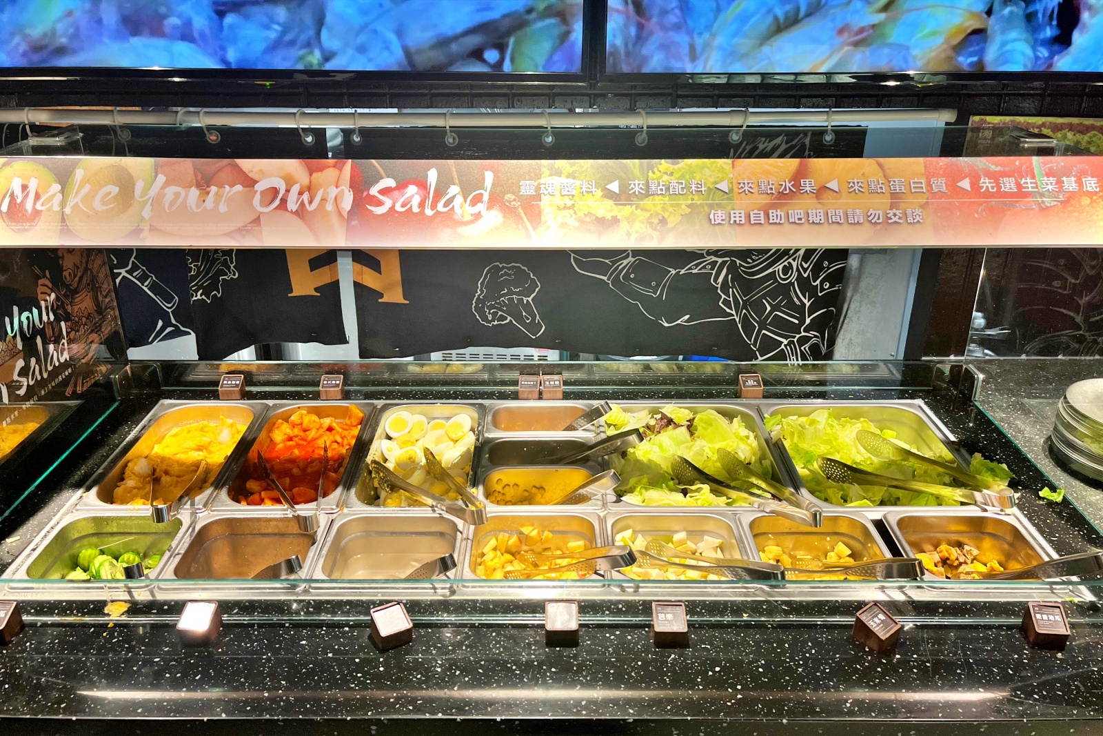 更我們意外的是,竟然還有雞胸肉、雞蛋豆腐、乳酪丁這些在普通自助沙拉吧特別少見的品項,通通可以吃到飽,實在是太佛心了吧!