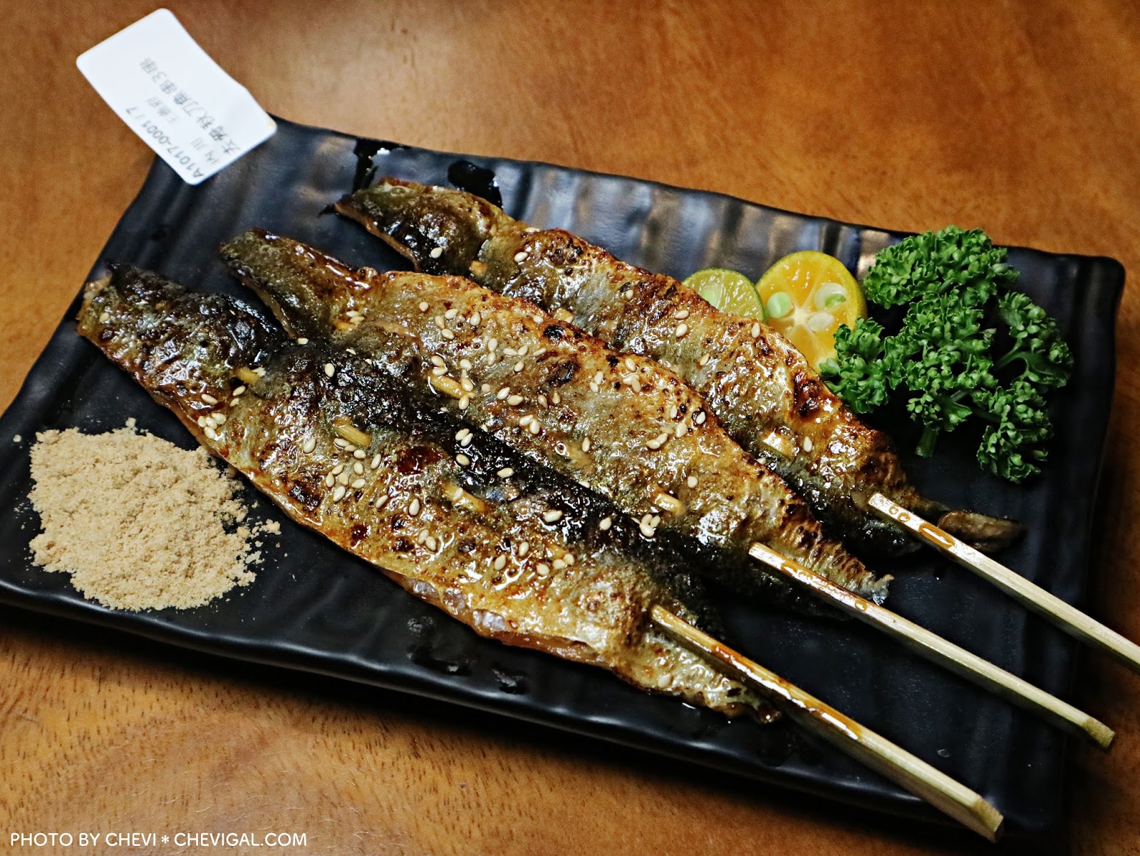 聽到去骨兩個字,真叫人眼睛亮了起來!串燒或烤物不需要再另去骨或挑刺,可說是特別方便!秋刀魚烤得油亮,鮮豔的色澤還會反映美麗的色彩,記得要熱熱吃,不要等到冷掉出油、影響口感與風味,就真的可惜囉!