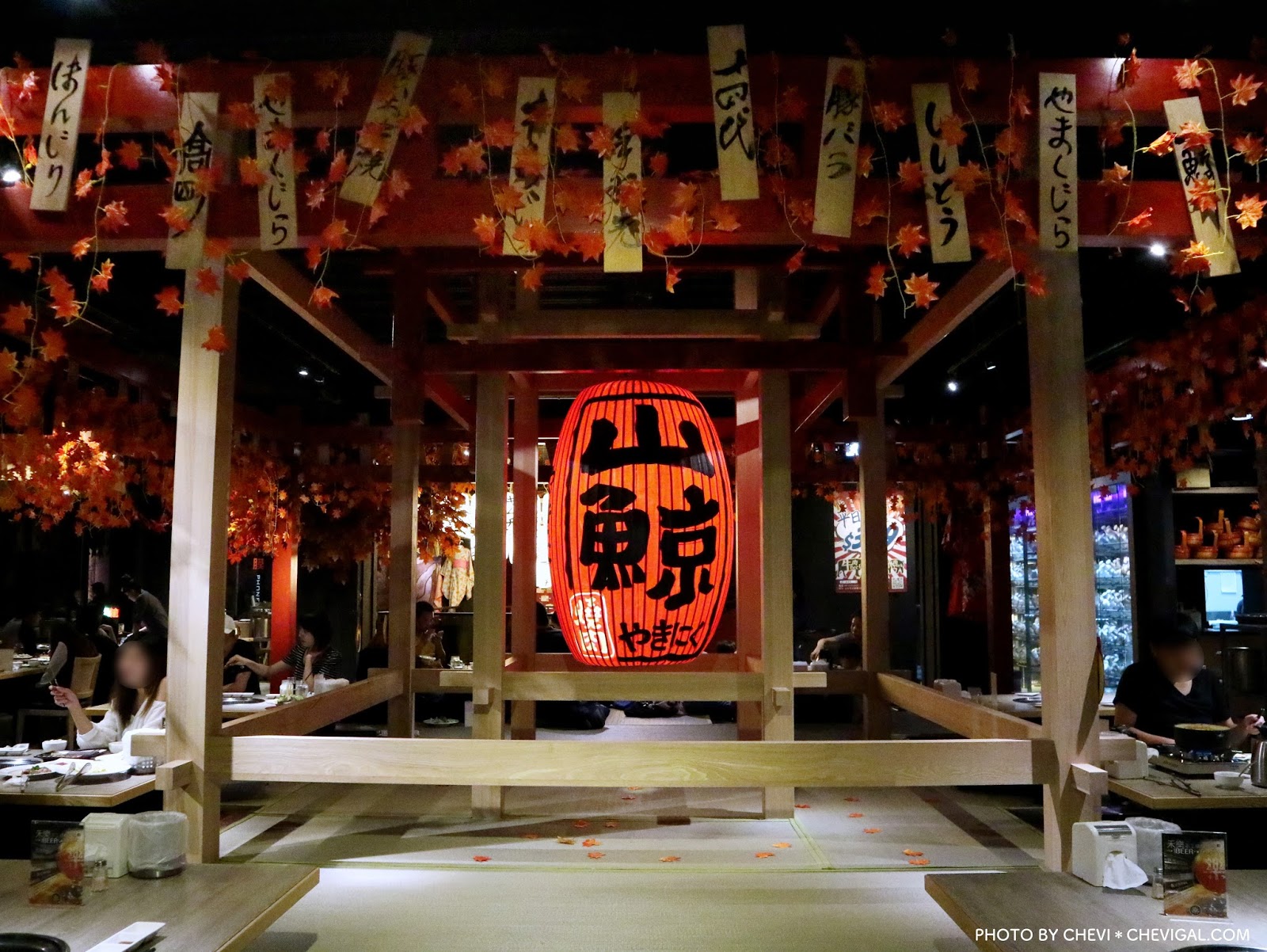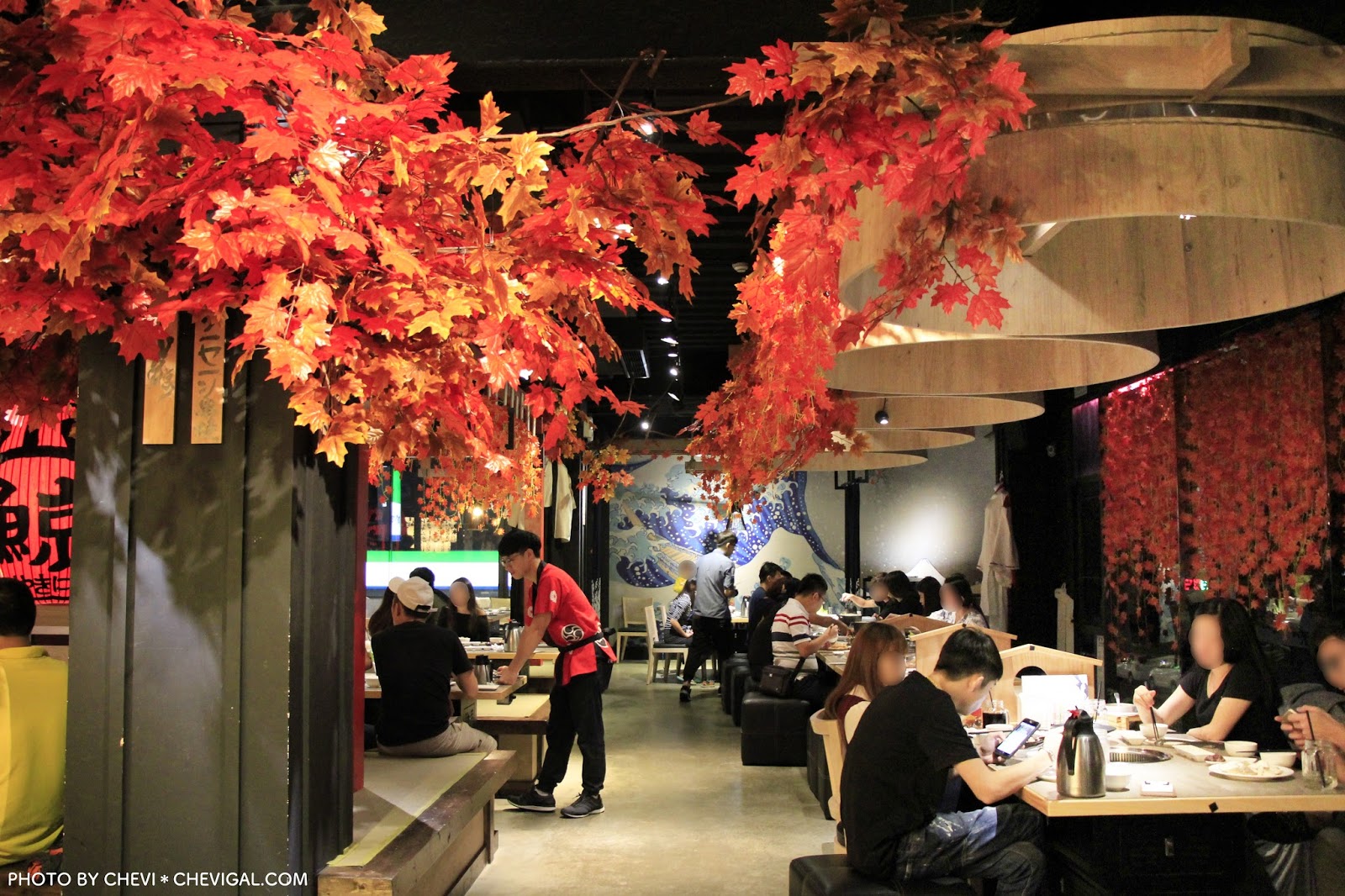 在店內人員的引導下,我們緩緩步上二樓,迎接我們的是大片壯麗的楓紅,搭配上日式的大紅燈籠,以及榻榻米的用餐空間,讓人有著彷彿一秒置身在享受日本賞楓的樂趣。
