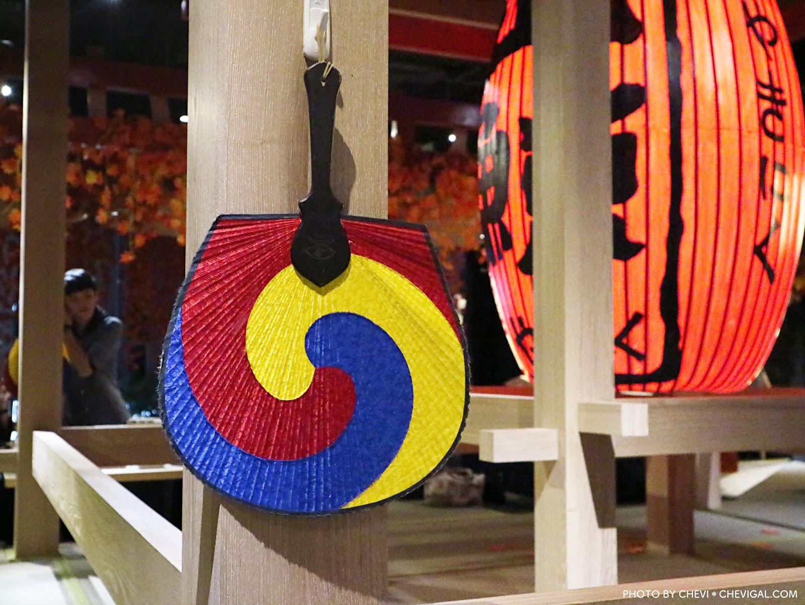 我們被安排在榻榻米的座位區,一旁的樑柱上頭還掛有一把韓風招呼扇,只要輕輕揮舞扇子,親切的店內人員就會前來詢問是否需要桌邊服務~如此就避免了喊了老半天,卻發現總是得不到回應的窘境,是個還蠻貼心的小設計。