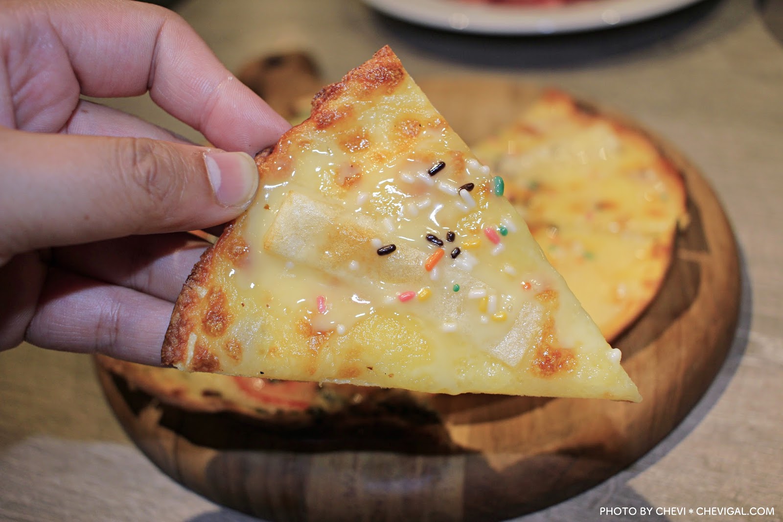 燈燈!接下來就要來介紹魚兒和柚柚都很愛的一道附餐啦!雖然看起來像是披薩,但正確來說應該要稱為TACOZZA,也就是義式薄餅的意思!