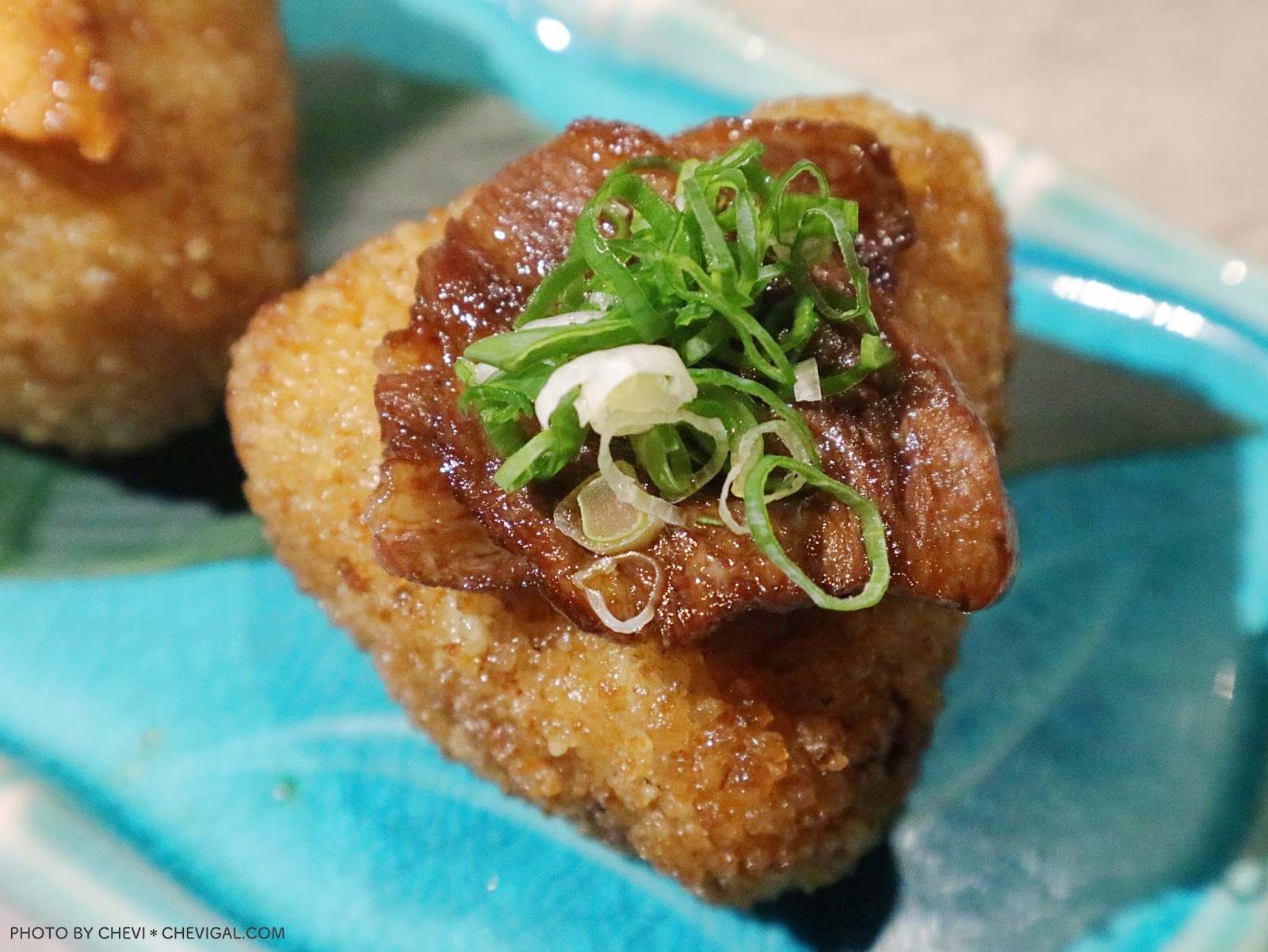 原本白飯的部份,我們則是加價更換成飯糰,分別點的是鮭魚起司口味與燒牛口味,第一次吃這種飯糰的我們覺得還蠻新奇的!