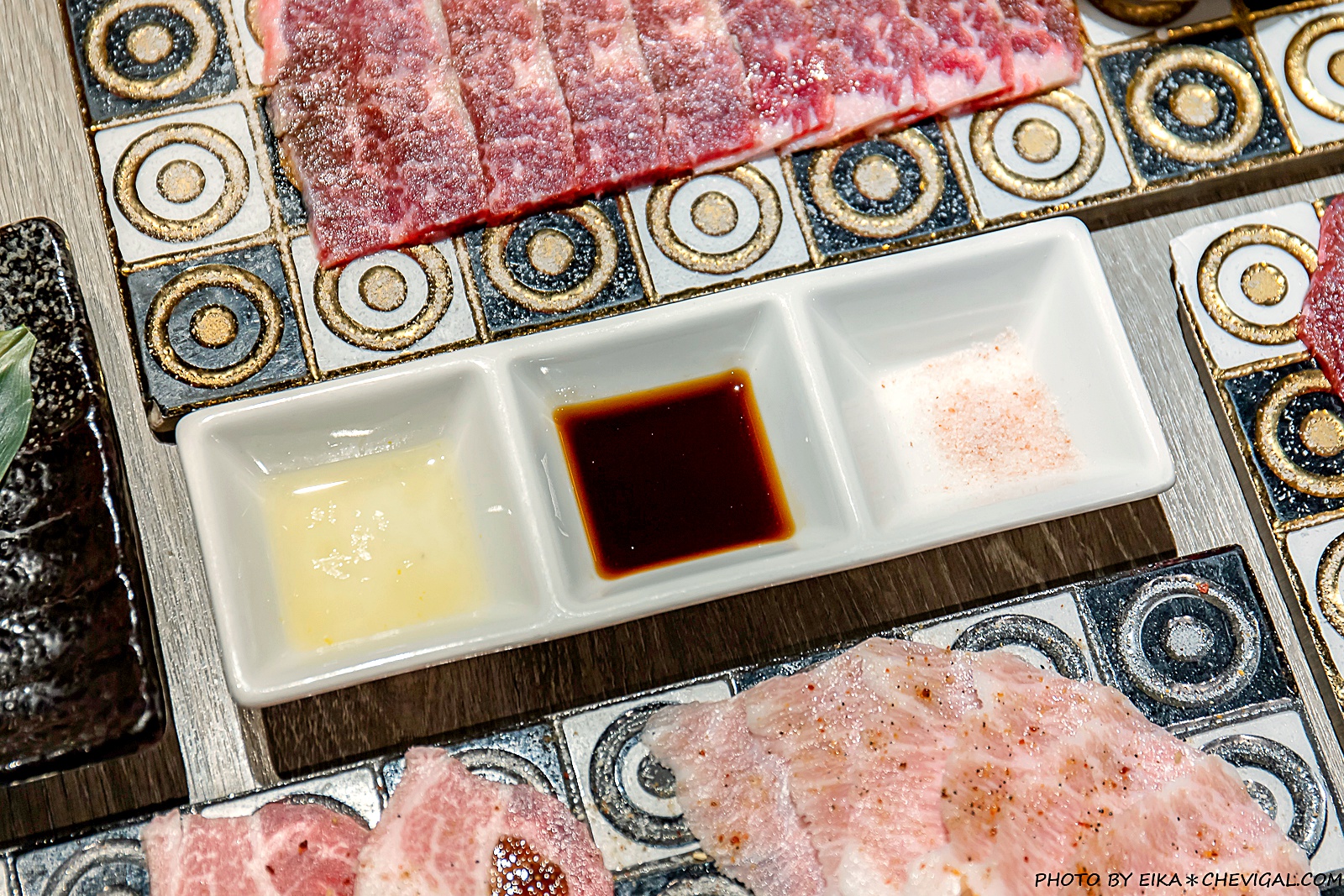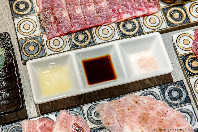 每人桌前都會附有檸檬汁、日式燒肉醬與玫瑰鹽,不過山鯨的燒肉大多都有基本的鹹度,所以我們比較常會沾取的是前兩款調味料,想要單吃燒肉當然也沒問題。