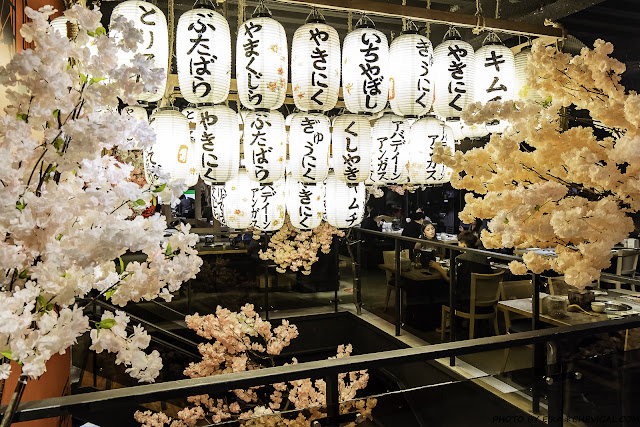 多盞明亮燈籠高掛,流露出濃濃的日式風情,抬頭就能看見繽紛櫻花盛開。