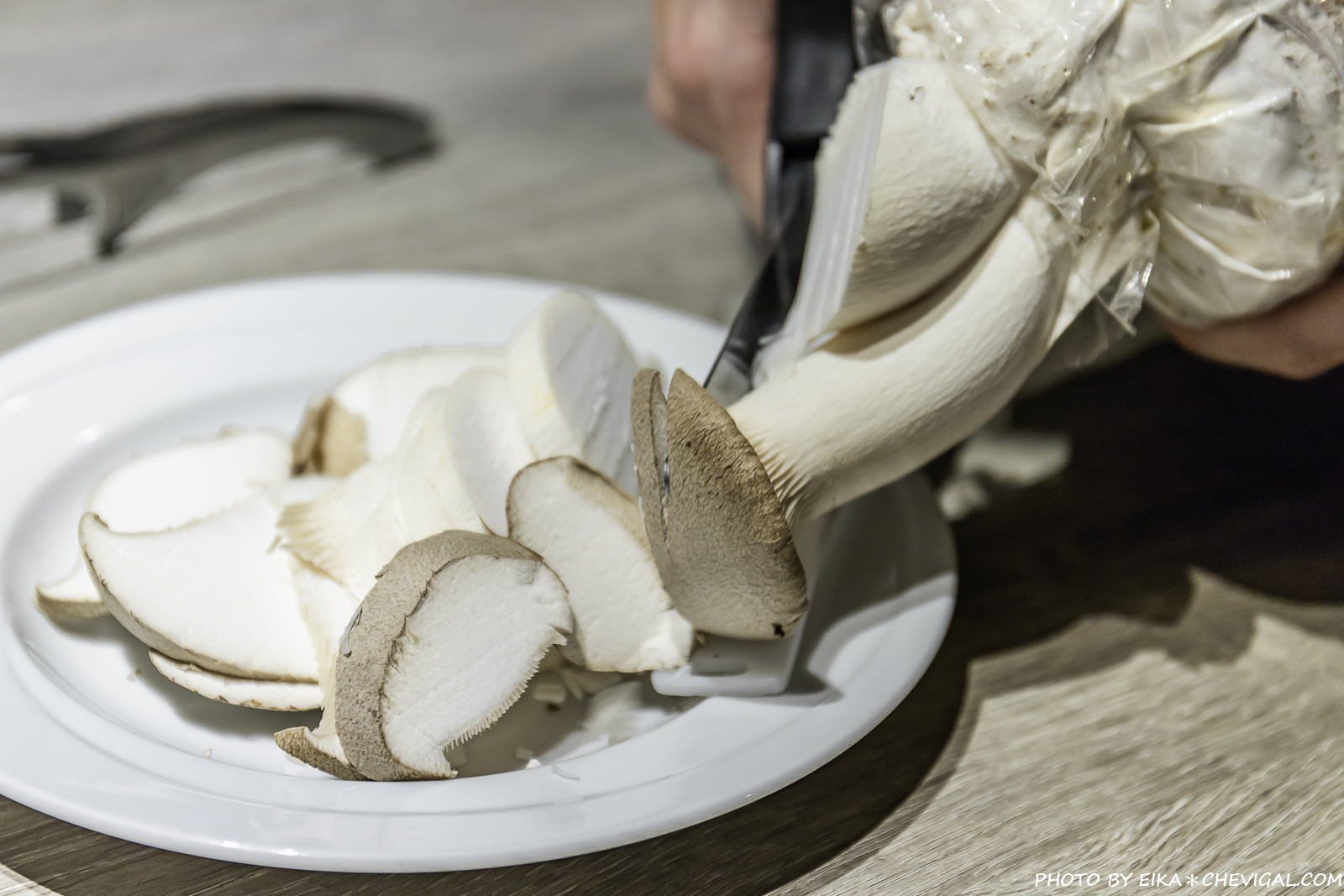 提籃裡頭會有一整包太空菇及一把剪刀,許多客人都喜歡體驗自己剪菇菇的樂趣,不知道該如何下手的話,也能直接請服務人員幫忙代勞。