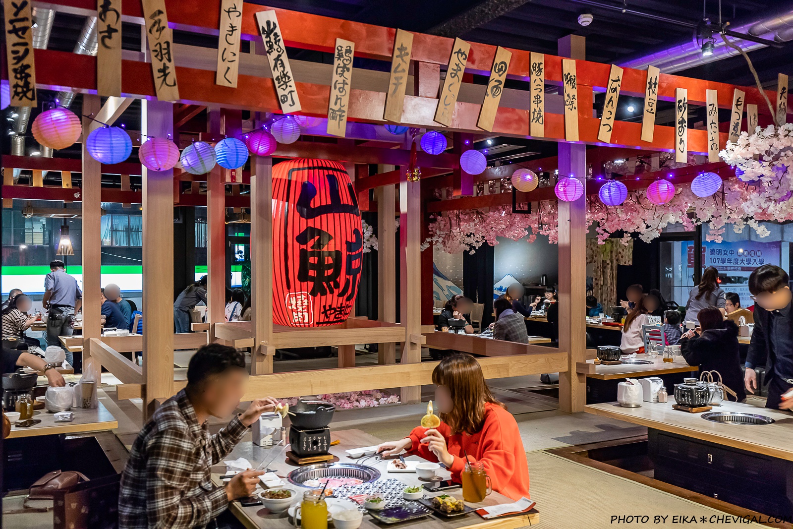 搭配上日式的大紅燈籠,以及榻榻米的用餐空間,讓人有著彷彿一秒置身在享受日本賞櫻的樂趣。