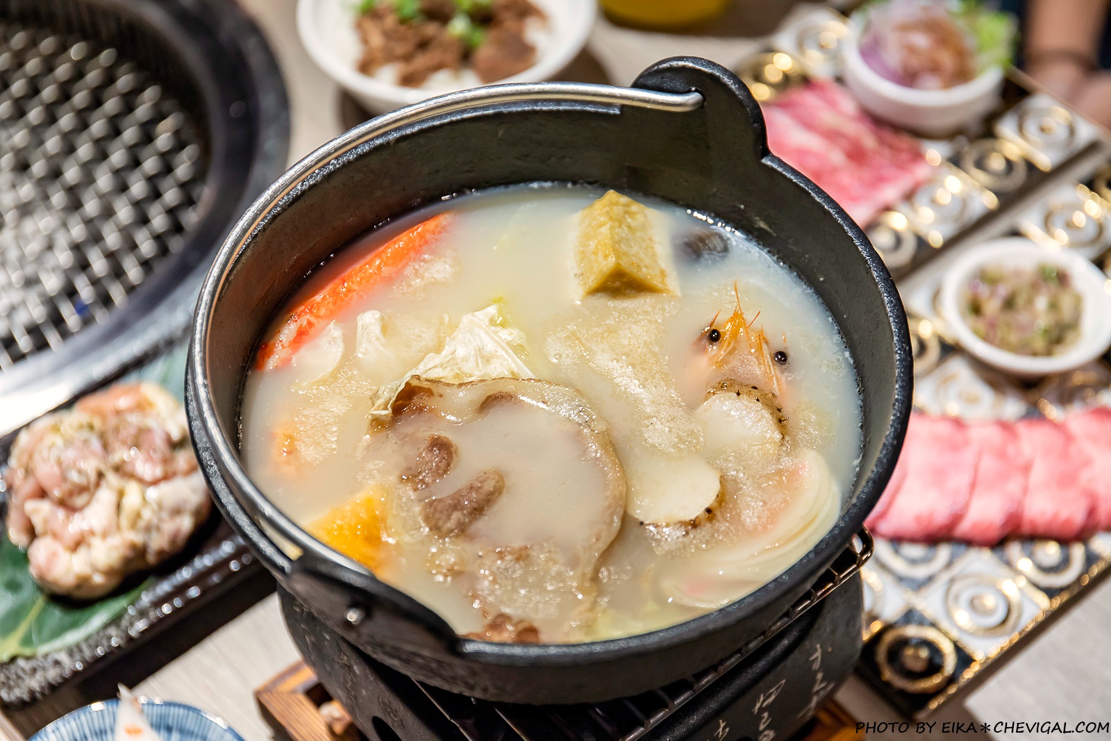相較於一般燒肉店餐前所提供的雞湯,山鯨大方地直接提供每桌一份火鍋,湯頭喝來溫順潤口,而且裡面還有海鮮、蔬菜、豬肉片等多種豐富食材,簡直和火烤兩吃的概念差不多啦!