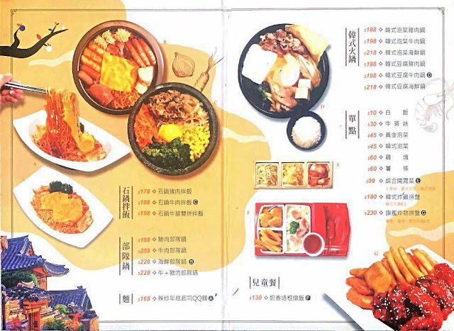這裡提供亞西米韓式餐廳的菜單給你們參考,品項有石鍋拌飯、部隊鍋、QQ麵、韓式火鍋、各式單點與兒童鍋,價位基本上都在$200元上下。