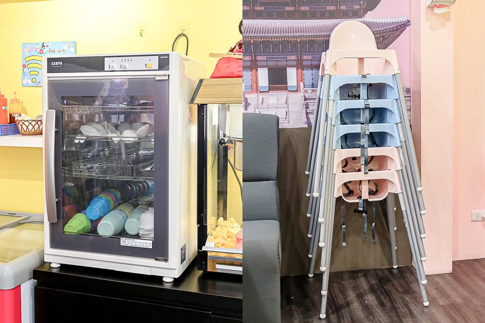 各式餐具都能自取,當然也少不了兒童餐具與兒童座椅,對於許多爸媽來說也省心不少。