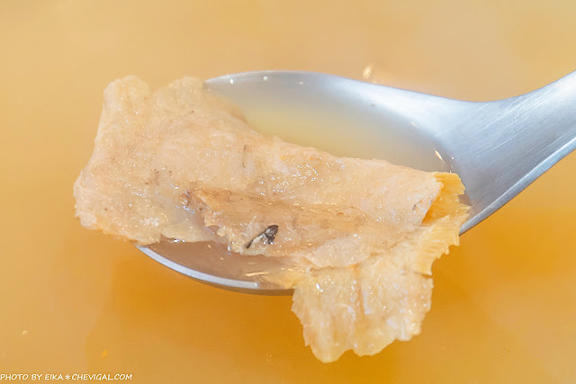 魚翅選用的是排翅,吃起來的口感厚實有彈性;外觀白淨透亮,細緻分明且軟中帶Q,而且沒有惱人的腥味,吸飽上湯的鮮甜風味更加滿足!