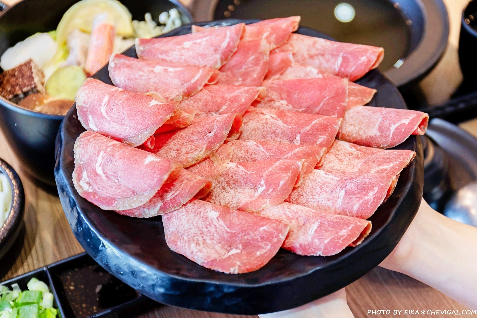 紐西蘭牛舌的肉質鮮嫩不柴澀,吃起來還帶點微Q的彈性。這裡除了一般的牛肉片、豬肉片以外,還有櫻桃鴨肉片、澳洲羊肩肉、澳洲和牛與日本和牛等等,可以吃到不同部位、等級的肉品,想吃澎派一點還能海陸雙拼,選擇十分彈性!
