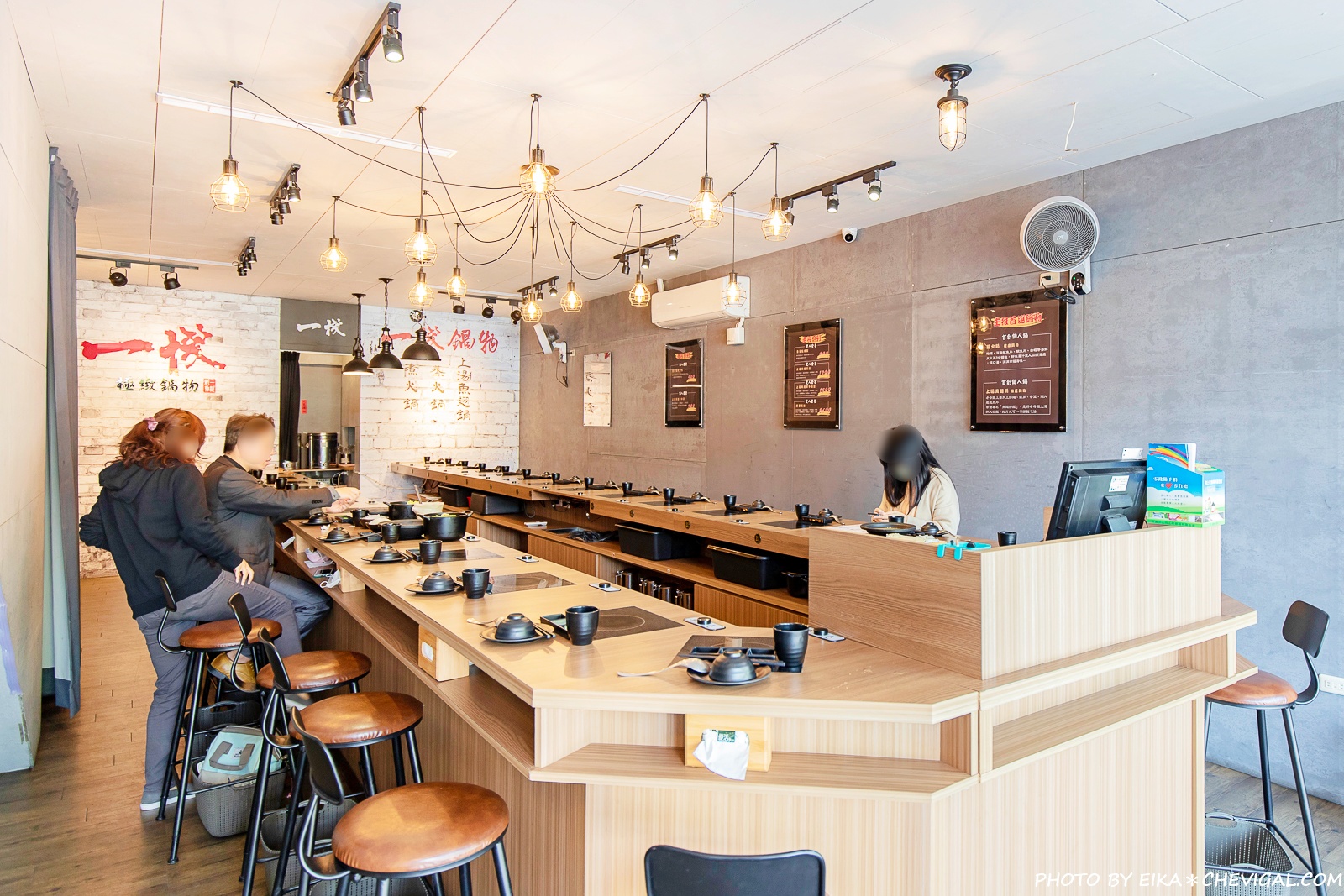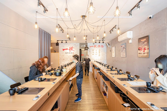 一棧鍋物週遭停車非常方便,基本上路旁白線的部份都能停車;整體的用餐空間簡潔又不失現代感,座位以吧台形式為主,如果有帶小朋友來用餐,店家也備有兒童座椅可以選擇。