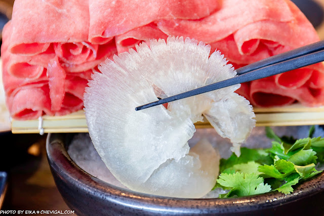 肉品我們這天點的是紐西蘭牛舌,在一般的個人火鍋餐廳算是比較少見的品項;重點是肉品的份量給得大方有誠意,不論是在視覺上或是實際吃起來都不覺得空虛,只要輕輕涮幾下、呈現粉嫩的色澤就能起鍋了。