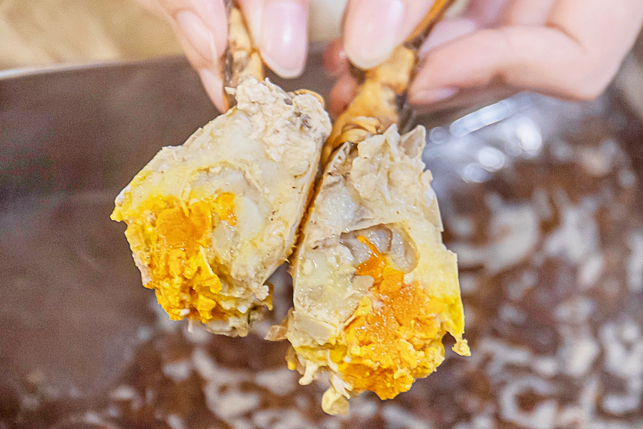 看這滿滿的蟹黃與蟹膏多到都快炸開來了,吃起來特別鮮甜迷人,真心建議千萬不要帶有痛風的朋友來,否則真的是會讓人凍美條啊!