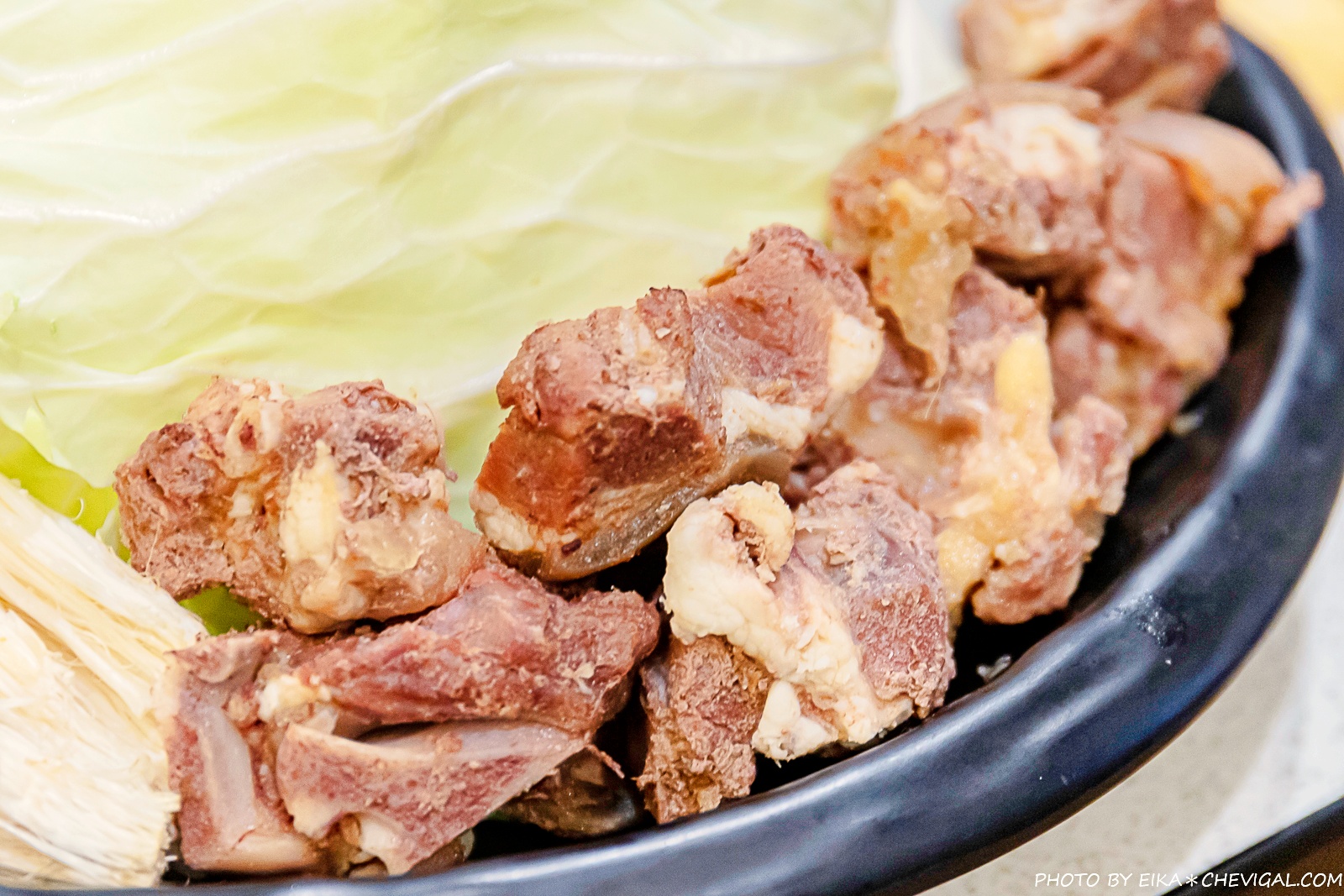 清燉羊肉爐裡面的基本食材有高麗菜與金針菇,我們搭配了本土帶皮羊肉;每塊羊肉都事先處理好為適口的大小,吃起來也很方便。