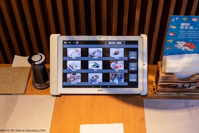以平板電腦點餐也是許多壽司連鎖店家採用的模式,每家的系統大同小異,方便又有效率,服務人員在帶位入座時會稍微說明點餐與結帳的方式。