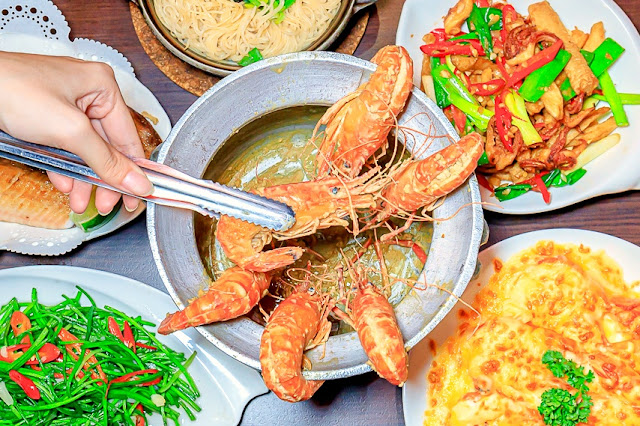 一品活蝦與其他熱炒最大的不同之處,就在於以特製的錫甕料理活蝦,不僅受熱更加均勻,保持蝦肉的鮮嫩多汁,還能讓醬汁快速入味。