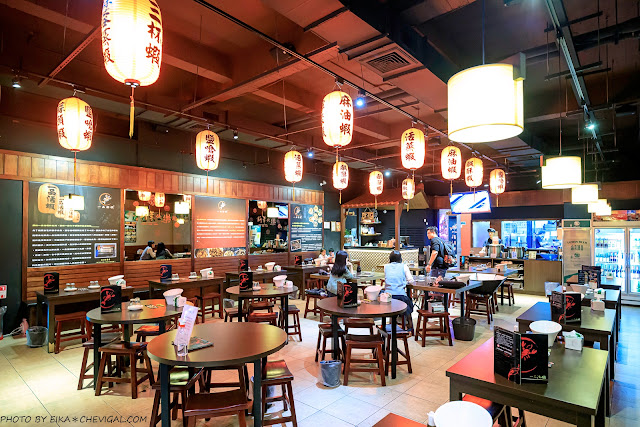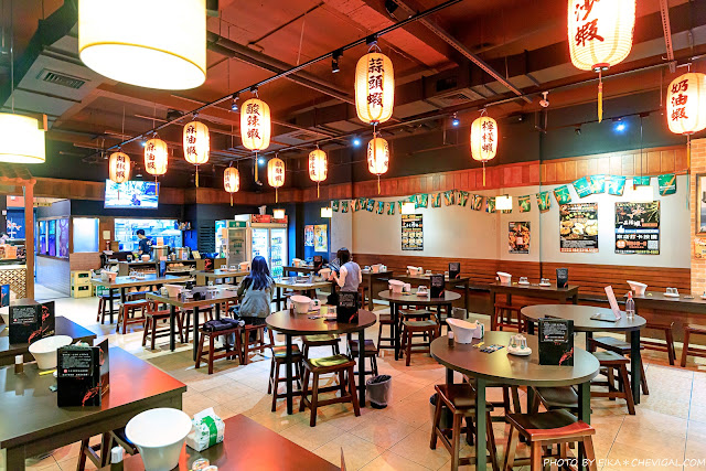 一品活蝦的裝潢相當復古,木質色調搭配上燈籠高掛,加上多張圓桌與板凳,流露出熱鬧與古早的溫暖氛圍。