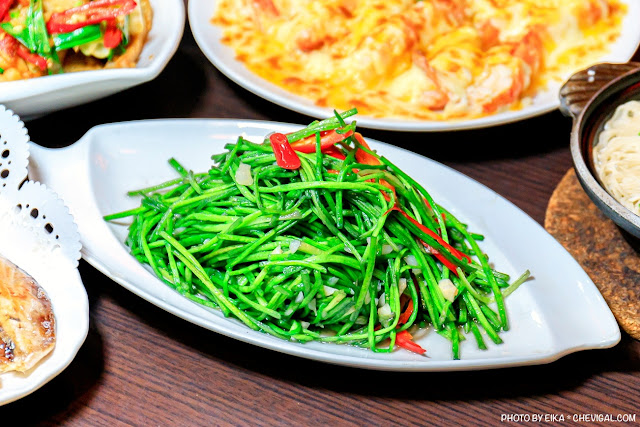 水蓮菜$100元,整盤的份量給得有誠意,吃來有著爽脆滑嫩的口感,味道也很清甜;辣度也可以做調整,想要小辣、中辣、大辣都沒問題,在點餐時服務人員都會詢問青菜是否要辣。
