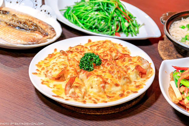 趁熱享用還能看到超多牽絲,就知道店家的起司放得真的不手軟,每隻蝦身都包覆了滿滿的起司,焗烤後的香氣特別誘人~