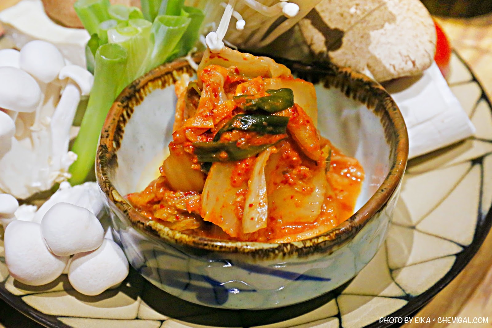 菜盤多以新鮮蔬果為主,多種菇類使得湯頭會變得更加鮮甜!韓式泡菜脆口酸辣,單吃或是加入湯頭都很不錯。
