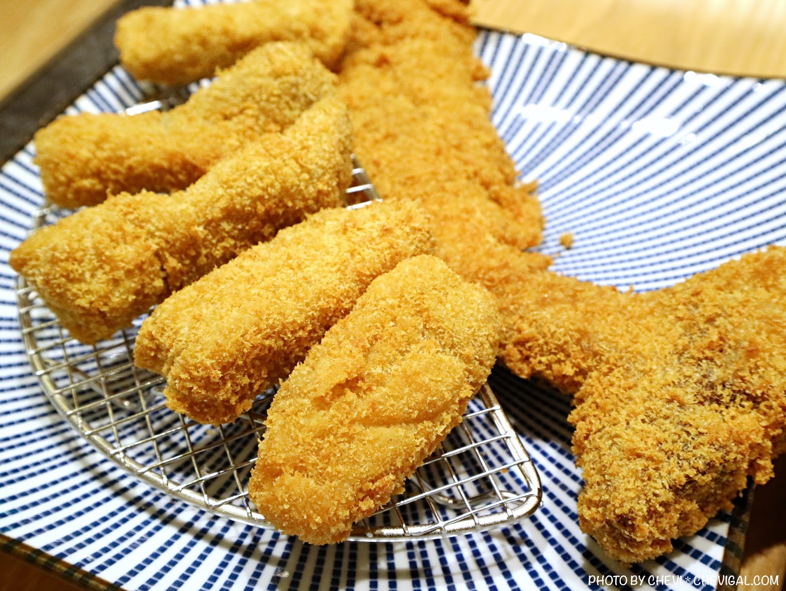 不過並非所有餐點都會附有精鑄鐵鍋,如果是完全包裏金黃麵衣的主餐,本身內部已經是七分熟;若是仍然看得到血色的主餐,本身以由芥花油與胡麻油低溫油炸,熟度是五分熟,會建議以精鑄鐵鍋再炸過,除了能夠加熱外,也能避免血水滲到麵衣影響口感唷!